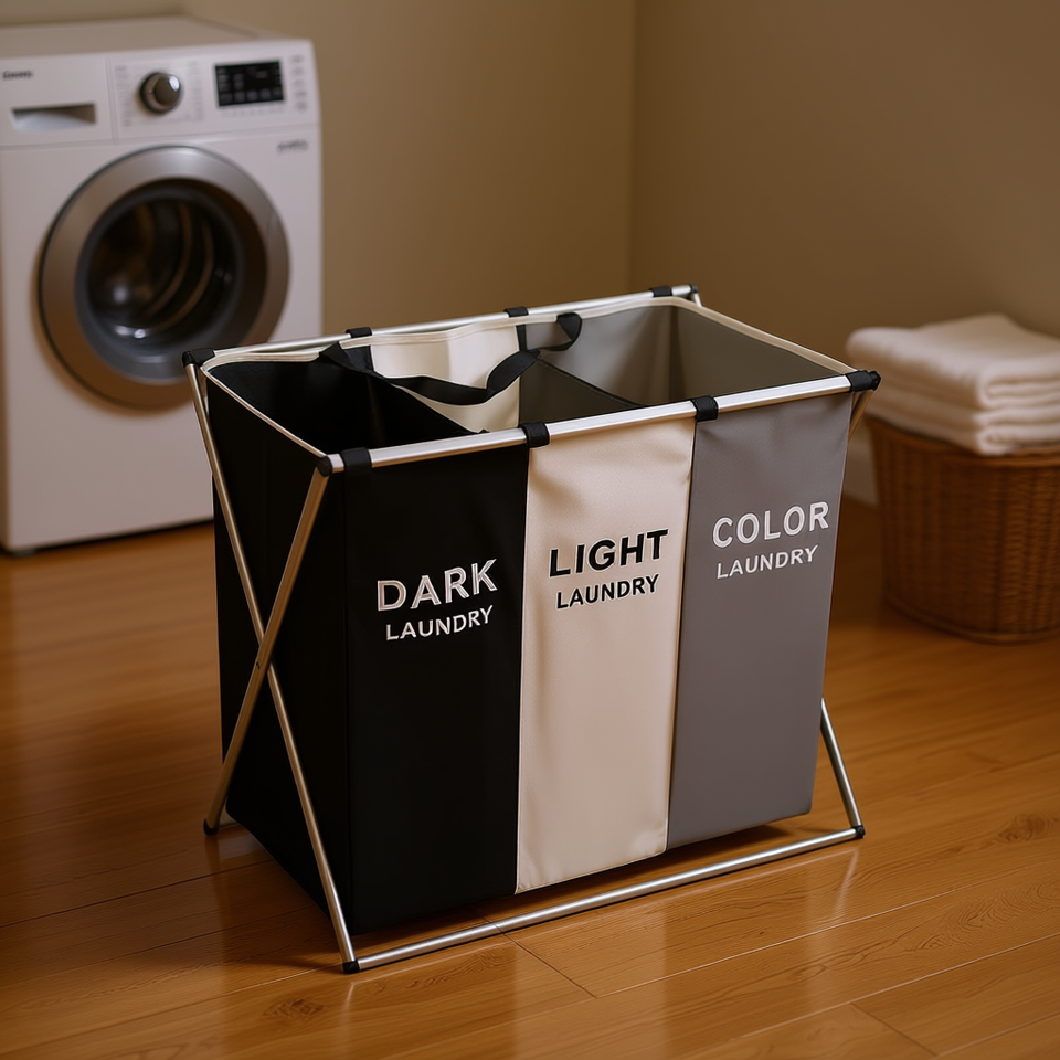 Cesto de ropa de tres compartimentos 6 unidades, organizador plegable, al por mayor, almacenamiento para el hogar