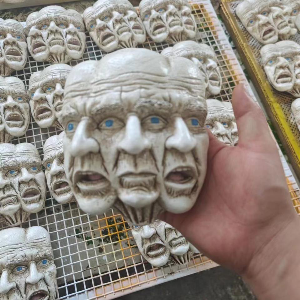 Máscara de Resina de Hombre de Tres Caras, Pintada a Color, para Fiesta de Halloween, Figura de Modelo con Cara de Calavera