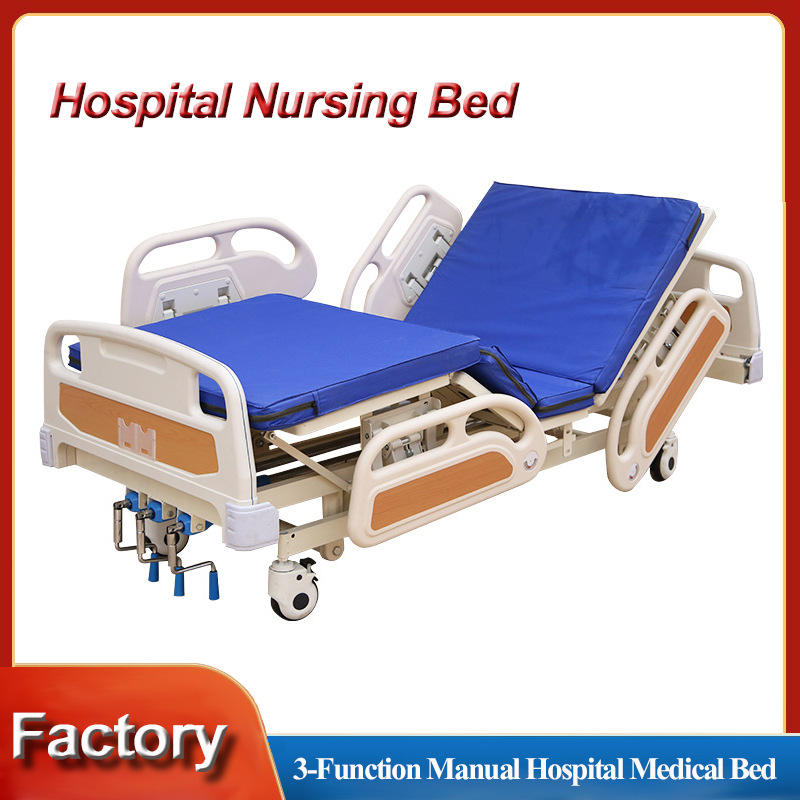 Cama de Hospital Manual de Tres Funciones, Material ABS, para Cuidado de Personas Mayores