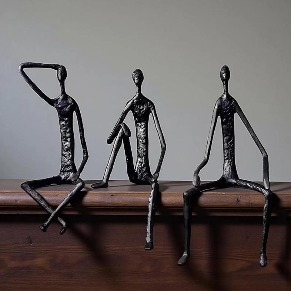 Juego de figuras abstractas de metal de los Tres Idiotas, pieza decorativa para mesa, ideal para exhibir en estanterías y decoración de interiores modernos.