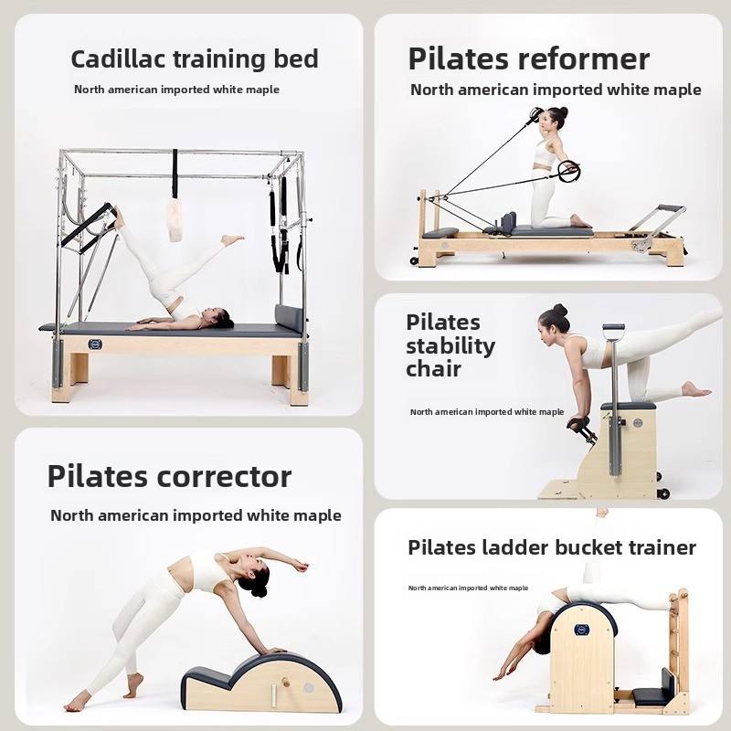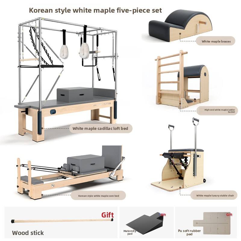 Escalera de Entrenamiento Deslizante Elevada Tres en Uno, Cama de Pilates, Equipo de Yoga y Fitness, Juego de Cinco Piezas Hecho de Madera