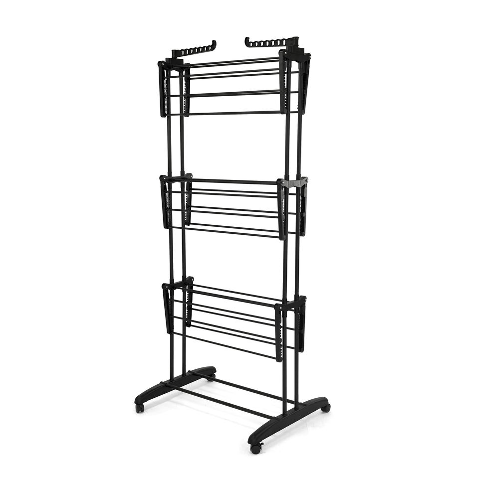 Tendedero de Ropa de Tres Niveles, Plegable, Móvil, de Metal Reforzado, para Interiores y Exteriores