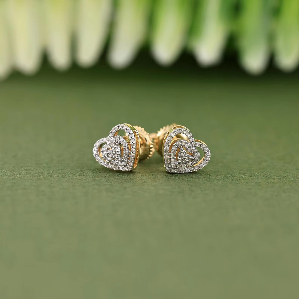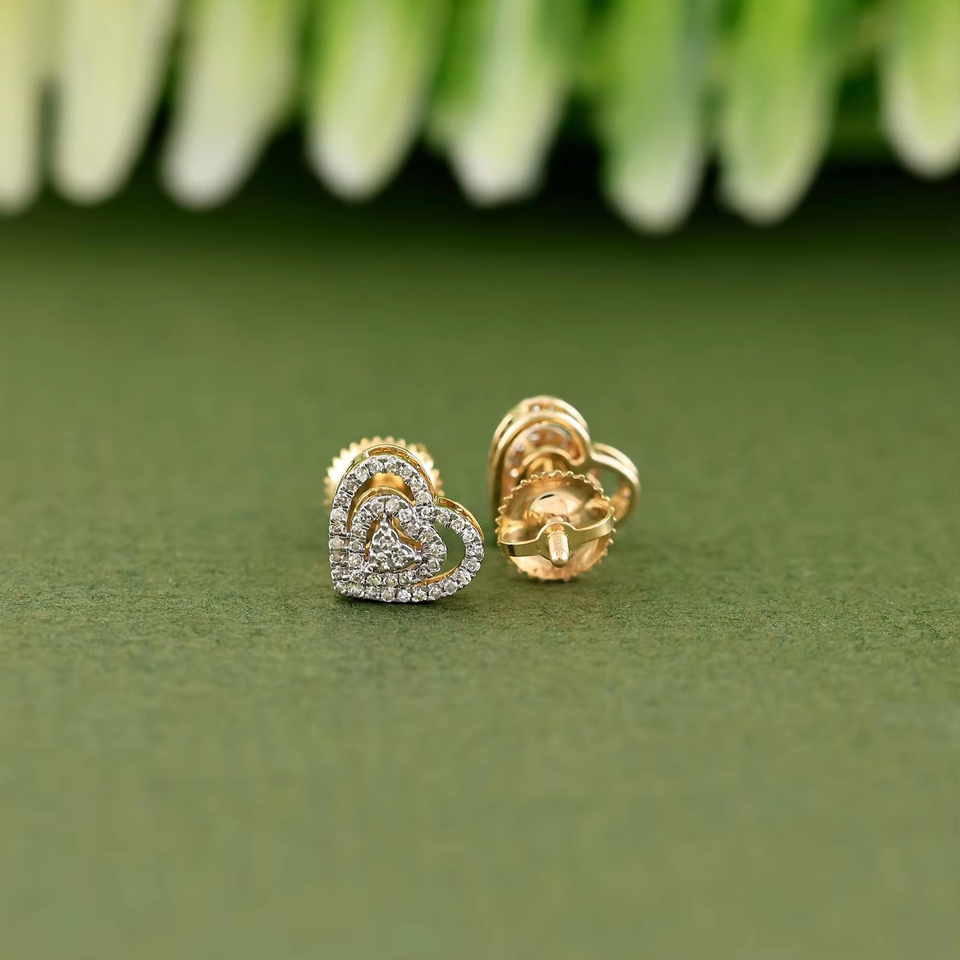 Tres capas de corte redondo Lab Grown Diamond Stud Heart Pendientes 14K Oro sólido Lujoso atractivo Perfecto para mejorar el aspecto formal
