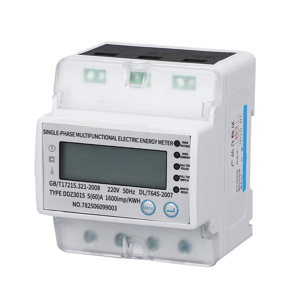 Medidor de energía digital trifásico 4P con riel Din kWh AC 220V Voltímetro Pantalla LCD Contador analógico y conexión RS485