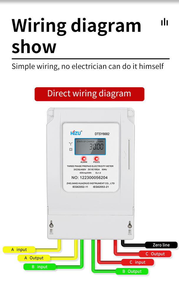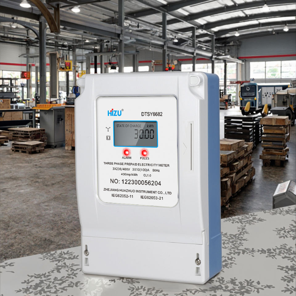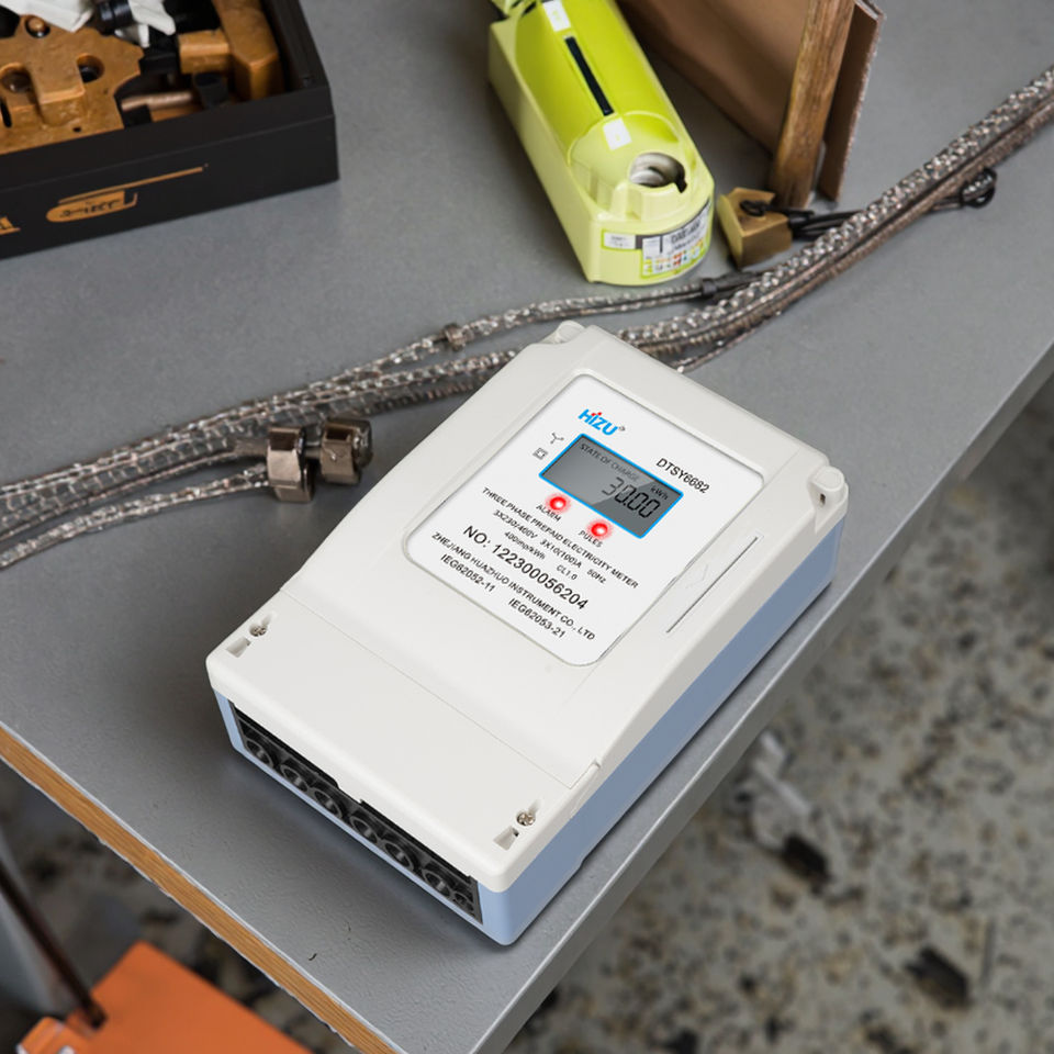 Caja de medidor de energía de prepago antifraude trifásico, medidor de KWH prepago, comunicación Modbus, pantalla LCD, precisión 1,0 montada en la pared