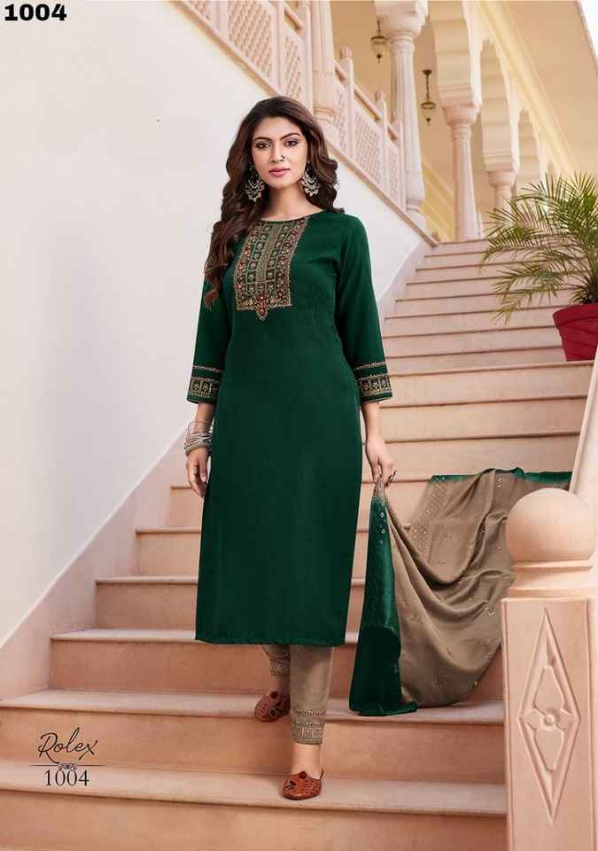 Colección de tres piezas, alta calidad, trabajo bordado, pantalón pesado, chino, Kurti, fabricante Dupatta, Surat, India