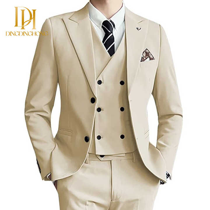 Conjunto de Traje de Boda de Tres Piezas en Colores Mixtos, Traje Casual Elegante para Hombre, Ropa para Banquete de Boda