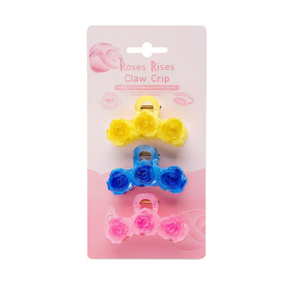 Pinza para el pelo con tres rosas de 10 cm, colorida, para mujeres y niñas