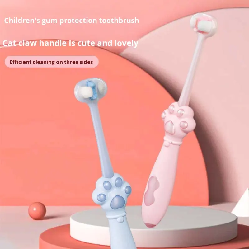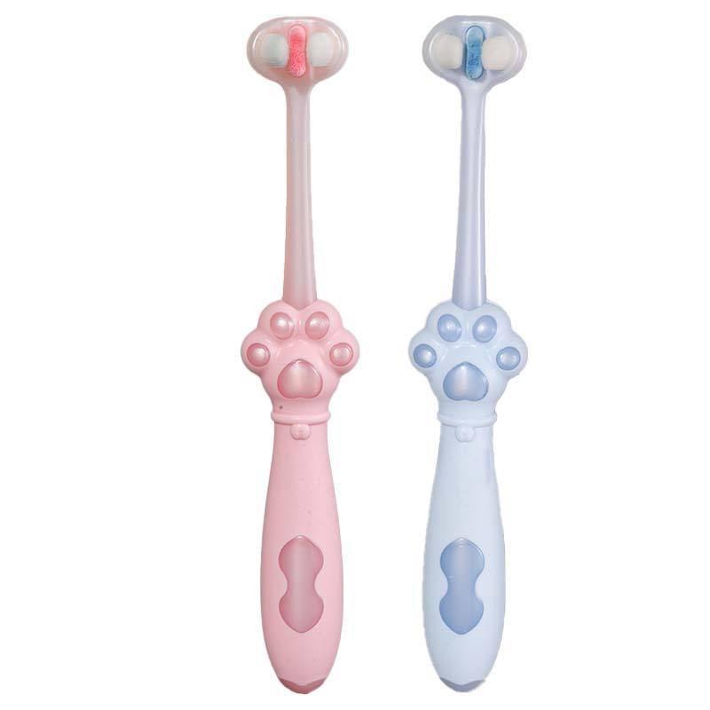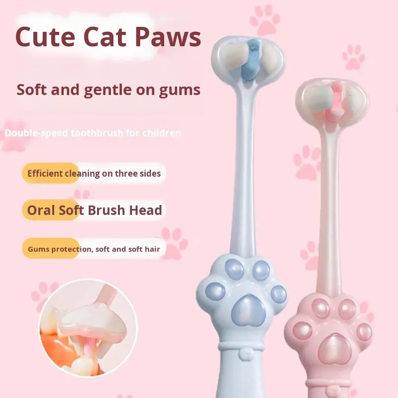 Cepillo de Dientes de Tres Lados con Forma de Pata de Gato, Cerdas Suaves, Tres Cabezas para el Cuidado de los Dientes de los Bebés, Niños de 6 a 12 Años, Venta al por Mayor para Estudiantes