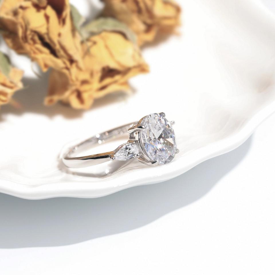 Anillos de diamantes cultivados en laboratorio apilables de cóctel de tres piedras de oro amarillo Rosa blanco sólido para mujer-joyería de boda al por mayor DS0013