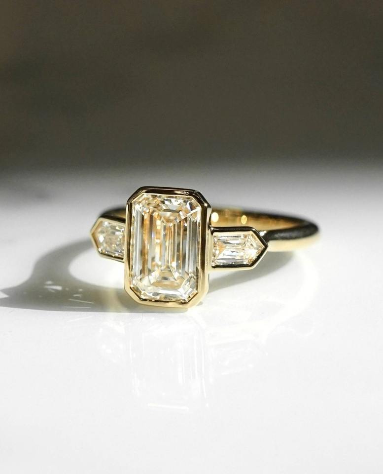 Anillo de Boda de Diamantes de Laboratorio de Tres Piedras para Mujer, 3.00 Ctw, Corte Esmeralda, Anillo de Compromiso con Diamantes Cultivados en Laboratorio, Engaste de Bisel, Joyería Nupcial