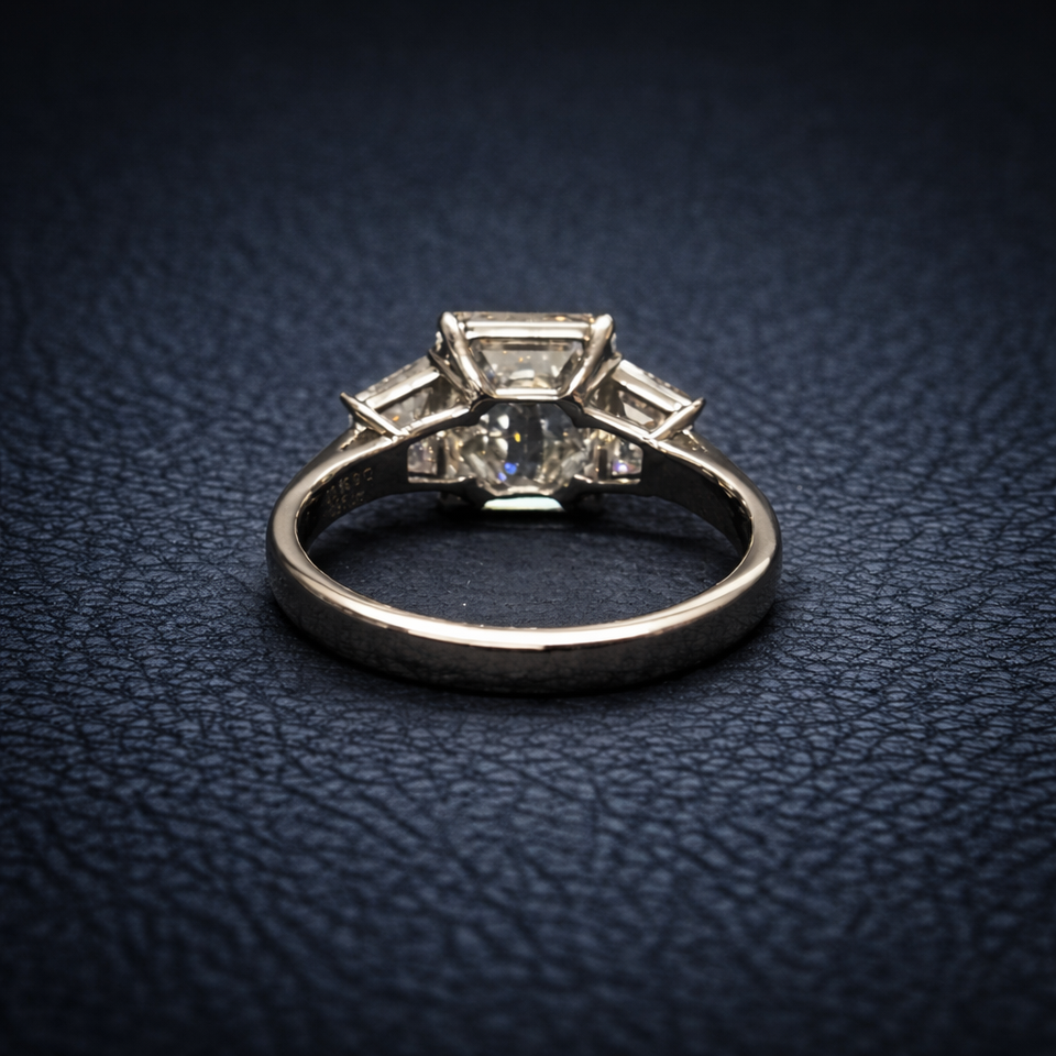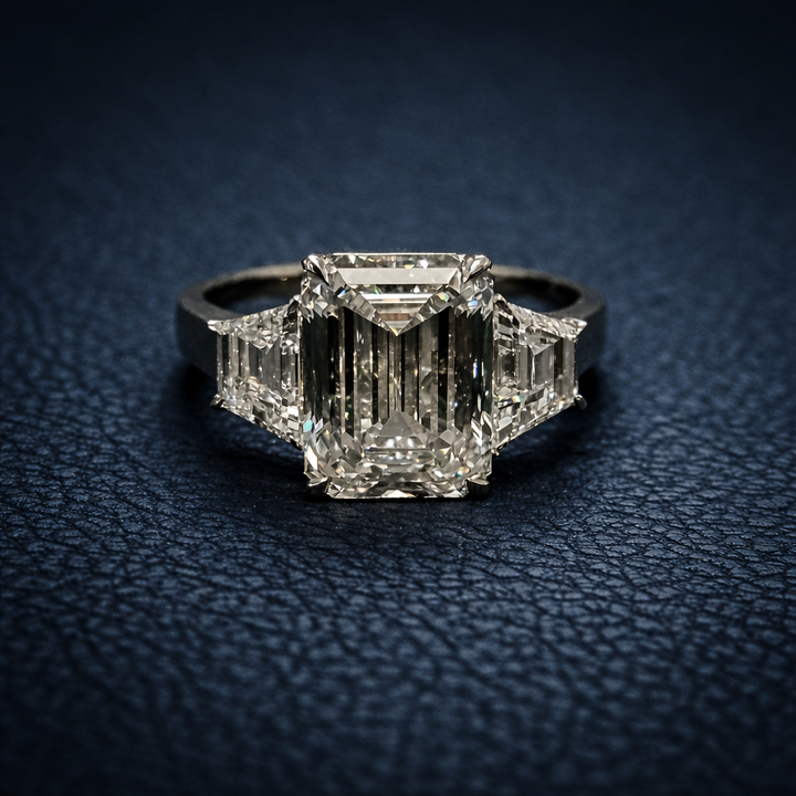 Anillo de Tres Piedras con Corte Esmeralda, Diamante Cultivado en Laboratorio, Chapado en Oro Sólido, Certificado IGI, Anillo de Compromiso y Boda para Mujer, Talla 7US