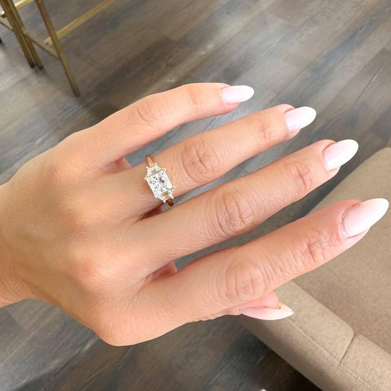 Anillo de sello de tres piedras, anillo solitario de diamante cultivado en laboratorio de corte princesa de oro de 14 quilates, joyería de regalo de fiesta fina de aniversario para socio