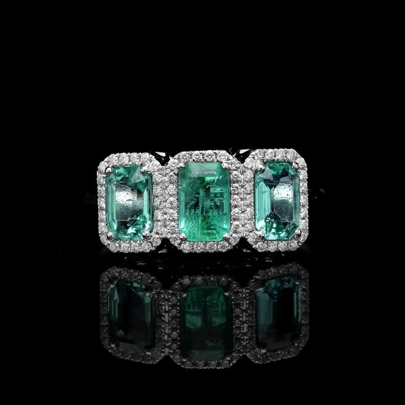 Palabra clave:Anillo de Lujo de Tres Esmeraldas con Gemas Naturales Verdes