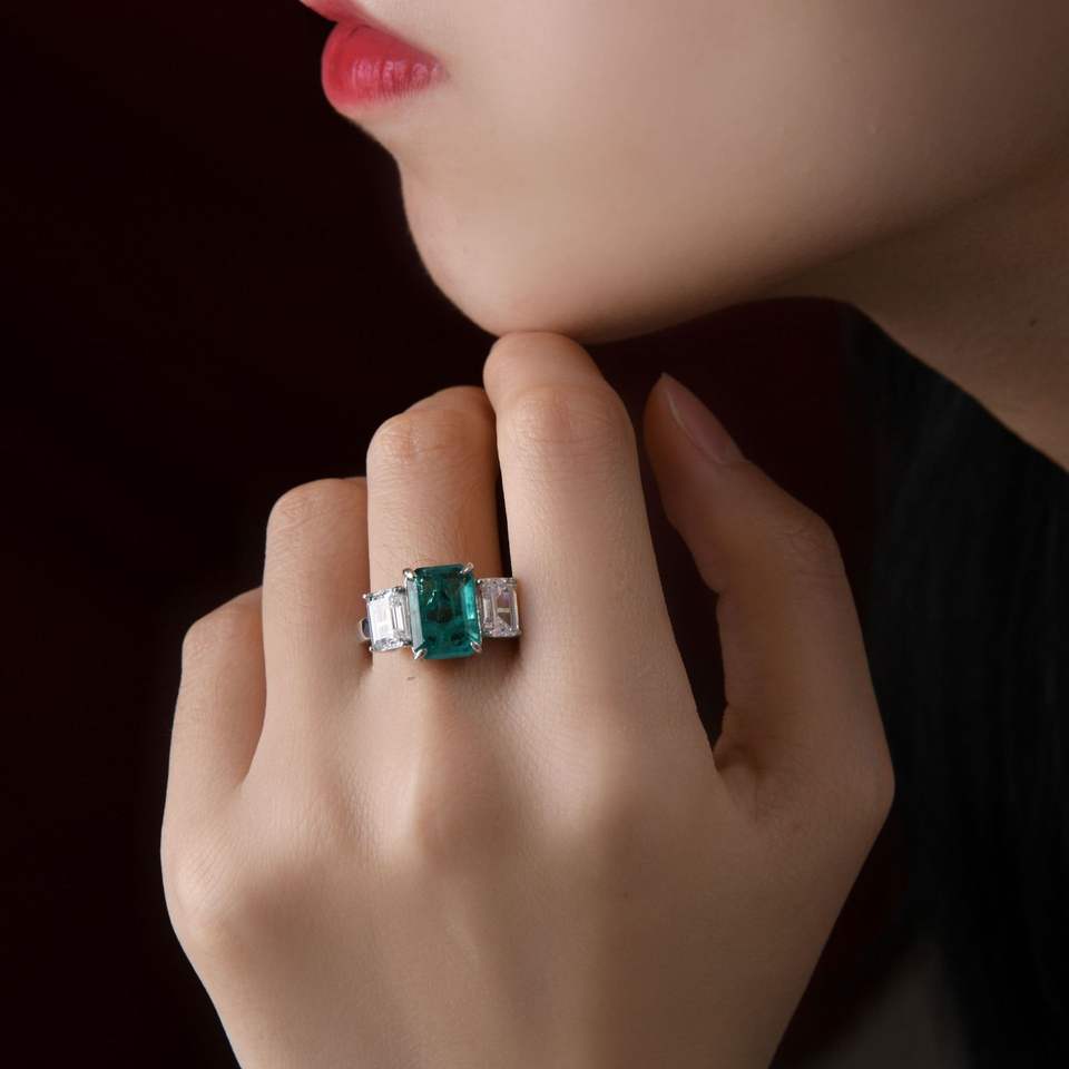 Anillo de Circonita de Tres Piedras de Moda, Chapado en Rodio, Plata de Ley 925 para Bodas y Fiestas