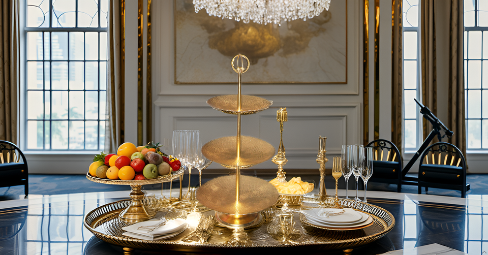 Soporte para pasteles de latón martillado de tres niveles con placa para bodas, pasteles, postres, frutas, dulces, exhibidores de buffet