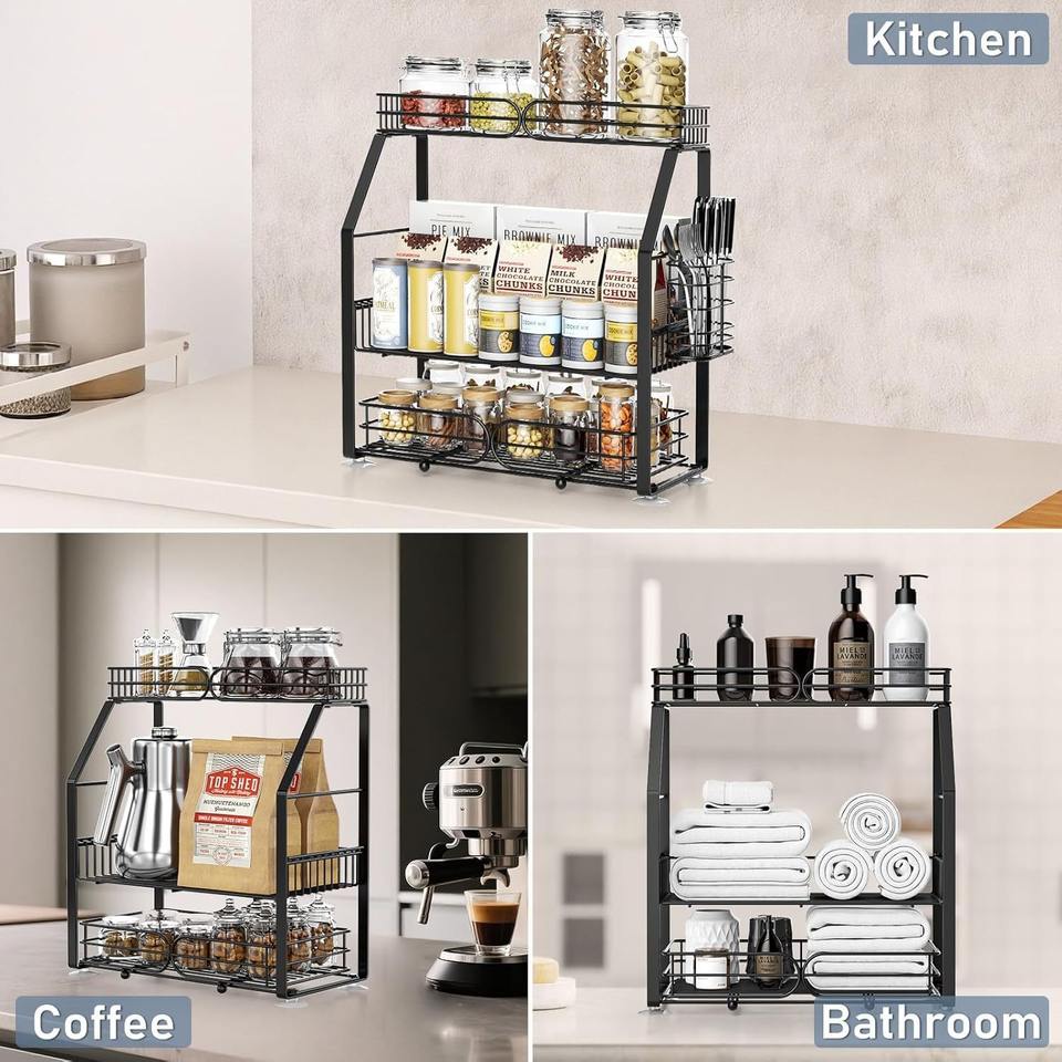 Estante para Especias de Tres Niveles, Organizador de Cocina de Acero al Carbono para Encimera, Estante de Almacenamiento Multifuncional con Ventosas