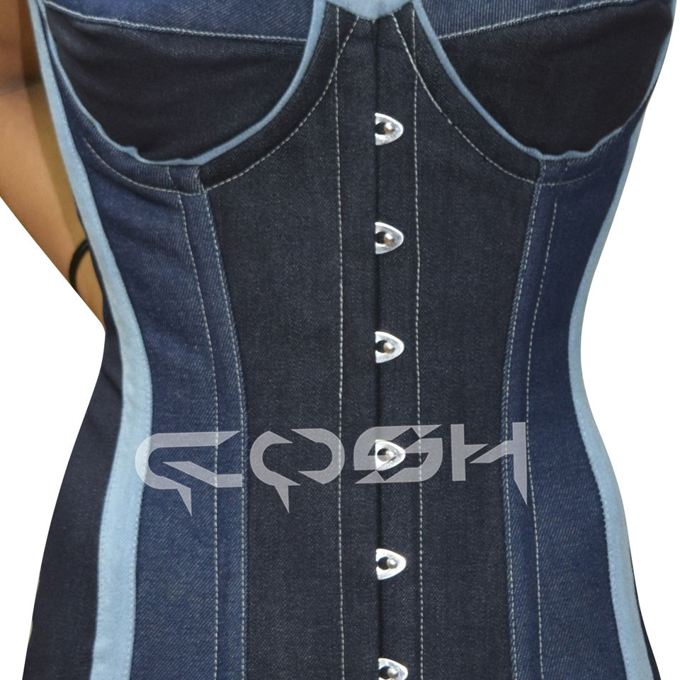 Corsé de copa redonda con aros de tres tonos de mezclilla con correa para el cuello