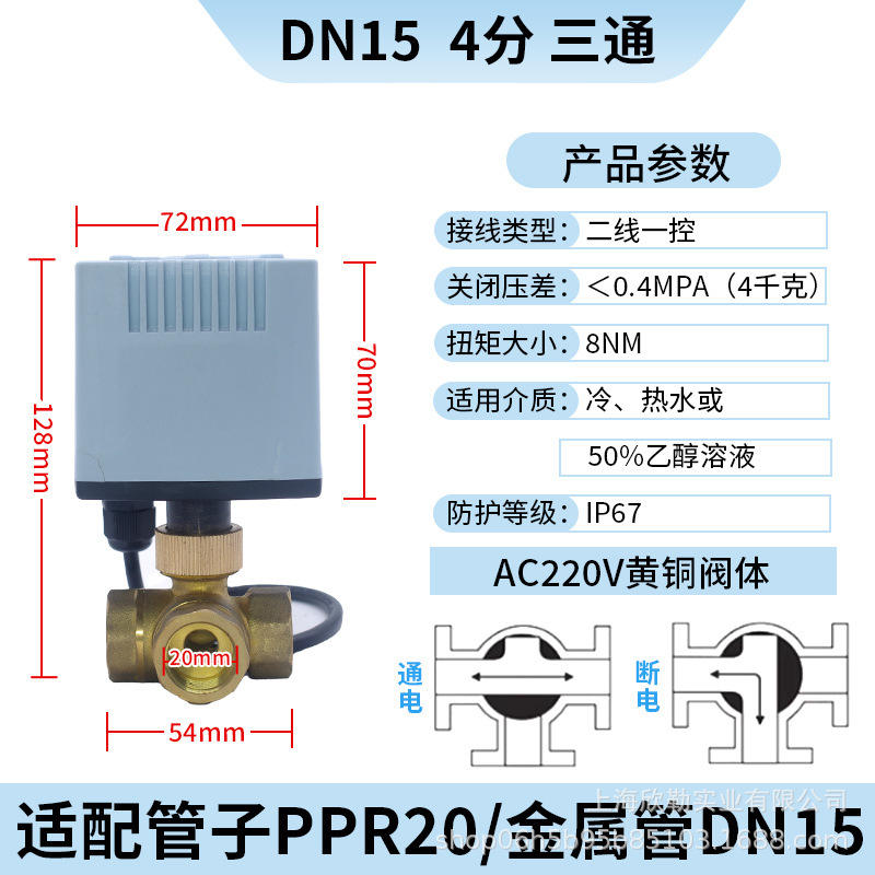 Válvula de Bola Eléctrica de Tres Vías para Conductos de HVAC, Riego Solar y Paso Completo, de Dos Cables, con Reinicio de un Solo Control para Agua y Gas
