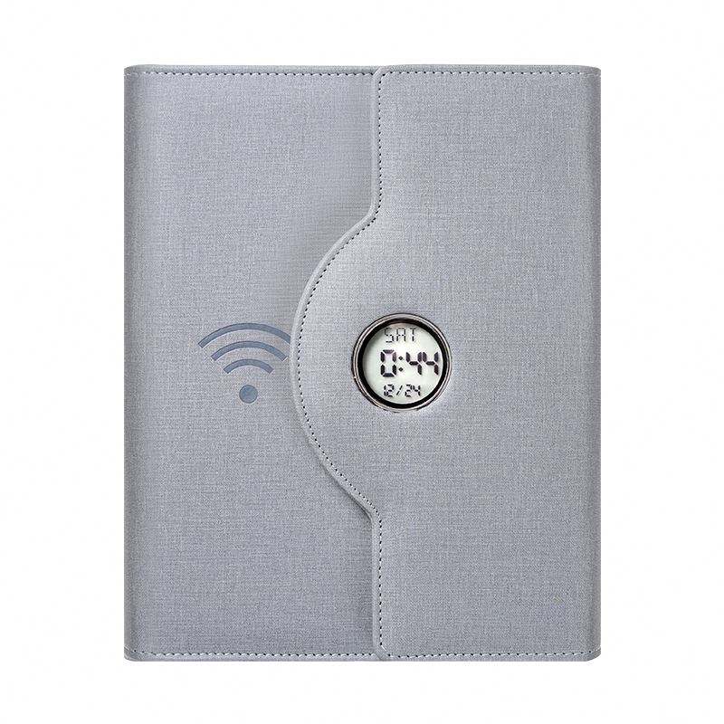 Bloc de Notas Triple con Banco de Energía, Cargador Inalámbrico y USB, Lámpara de Lectura y Reloj Electrónico, Ideal para Regalos