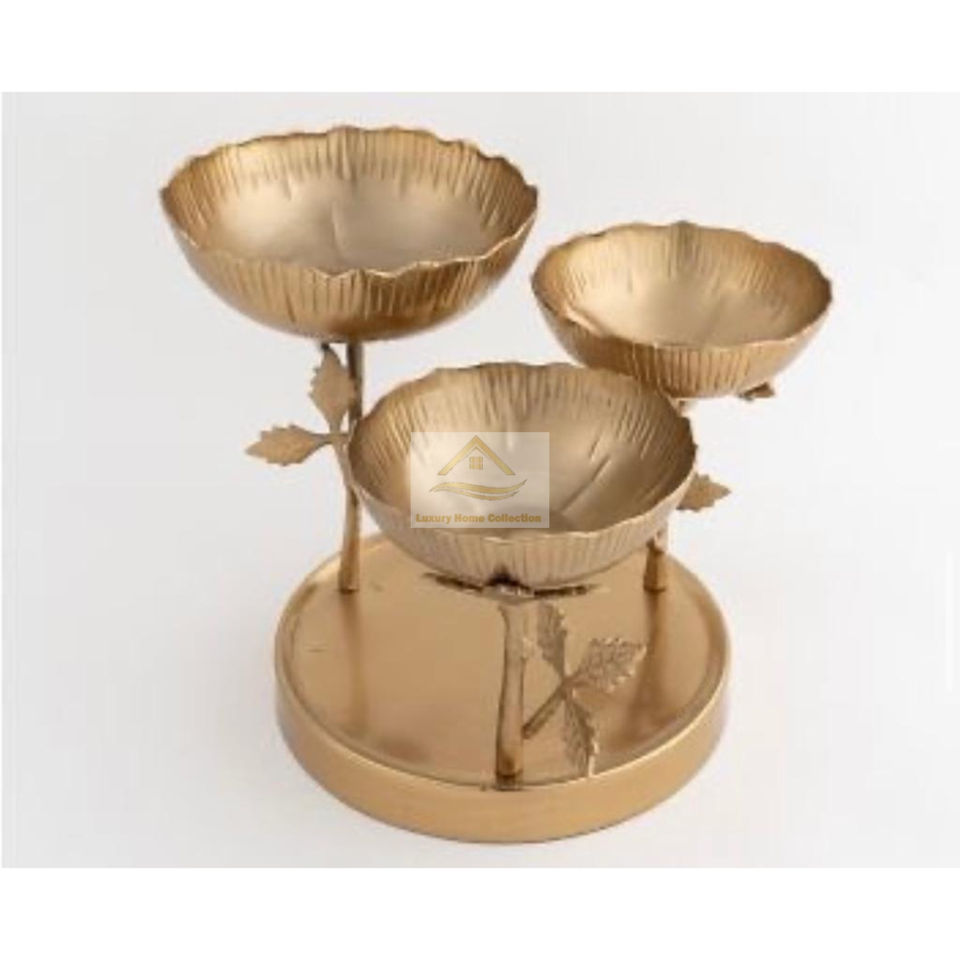 Vajilla desechable lacada en oro tres en uno, cuenco para servir aperitivos, cuenco para mesa, alimentación, fiestas, suministros de utensilios de cocina