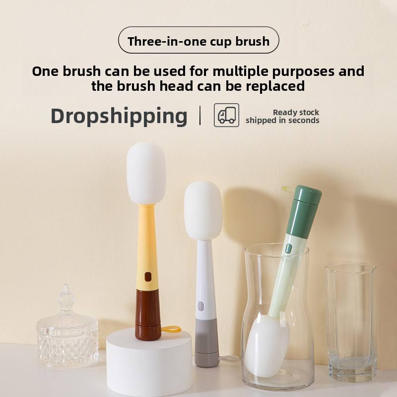 Cepillo de limpieza tres en uno para vasos y botellas, ideal para limpiar vidrio.
