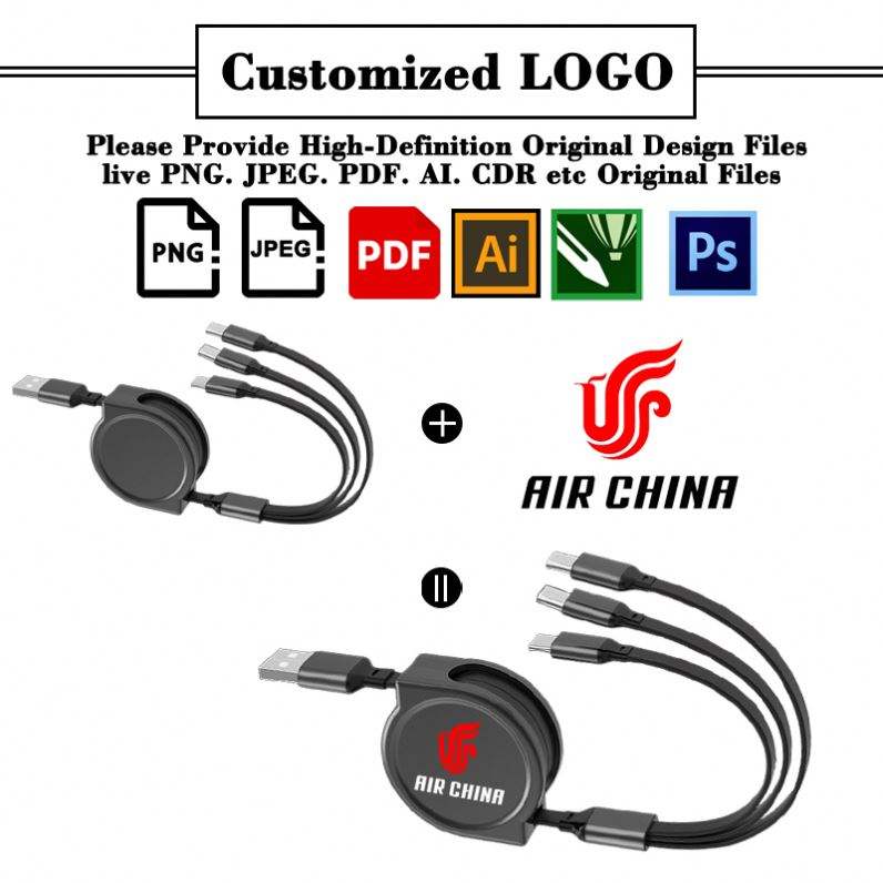 Cable de Datos Líquido Tres en Uno, Regalo Publicitario Personalizado con Logotipo, Carga Rápida de 3A, Cable de Carga Telescópico Triple