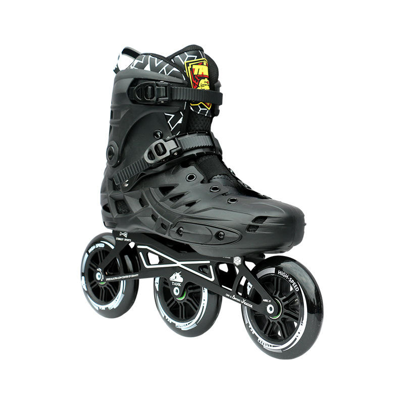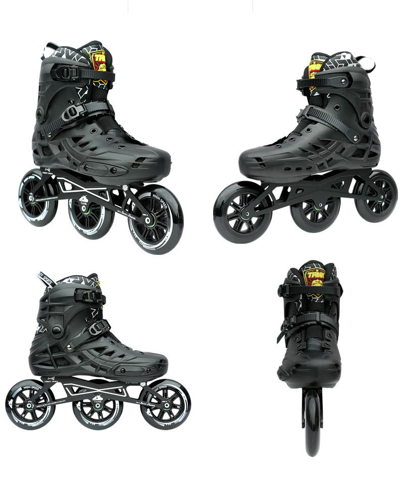 Patines en Línea de Una Fila y Tres Ruedas para Adultos, Color Negro, con Carcasa de PP Resistente a Impactos