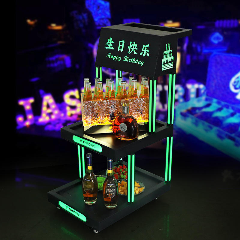 Carrito de Bebidas LED Throne con Cubitera y Porta Botellas para Fiestas de Cumpleaños, Bares, KTV y Clubs