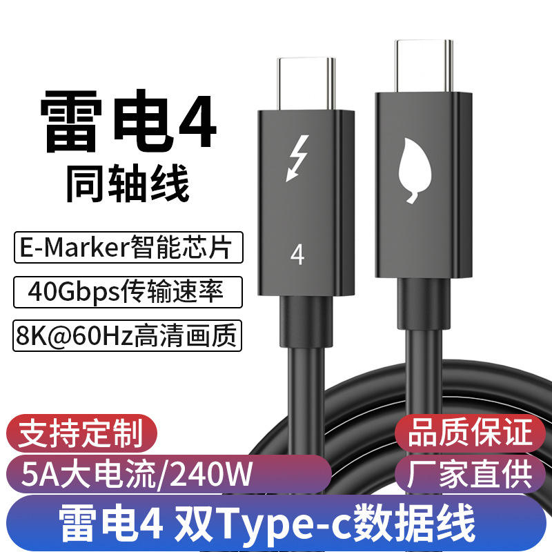 Cable de datos USB4 tipo C a C compatible con Thunderbolt 4, carga rápida de 40 Gbps, doble cabezal, aleación de aluminio, negro