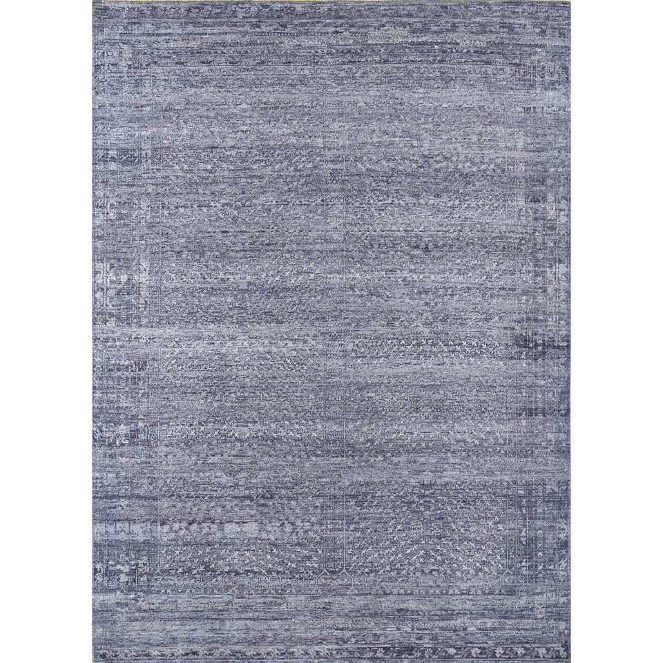 Alfombra de Lana Azul Tomillo Anudada a Mano AKWL-1134 (Cs-03) Alfombra Grande con Patrón Abstracto para Decoración de Sala de Estar, Pasillo y Hogar