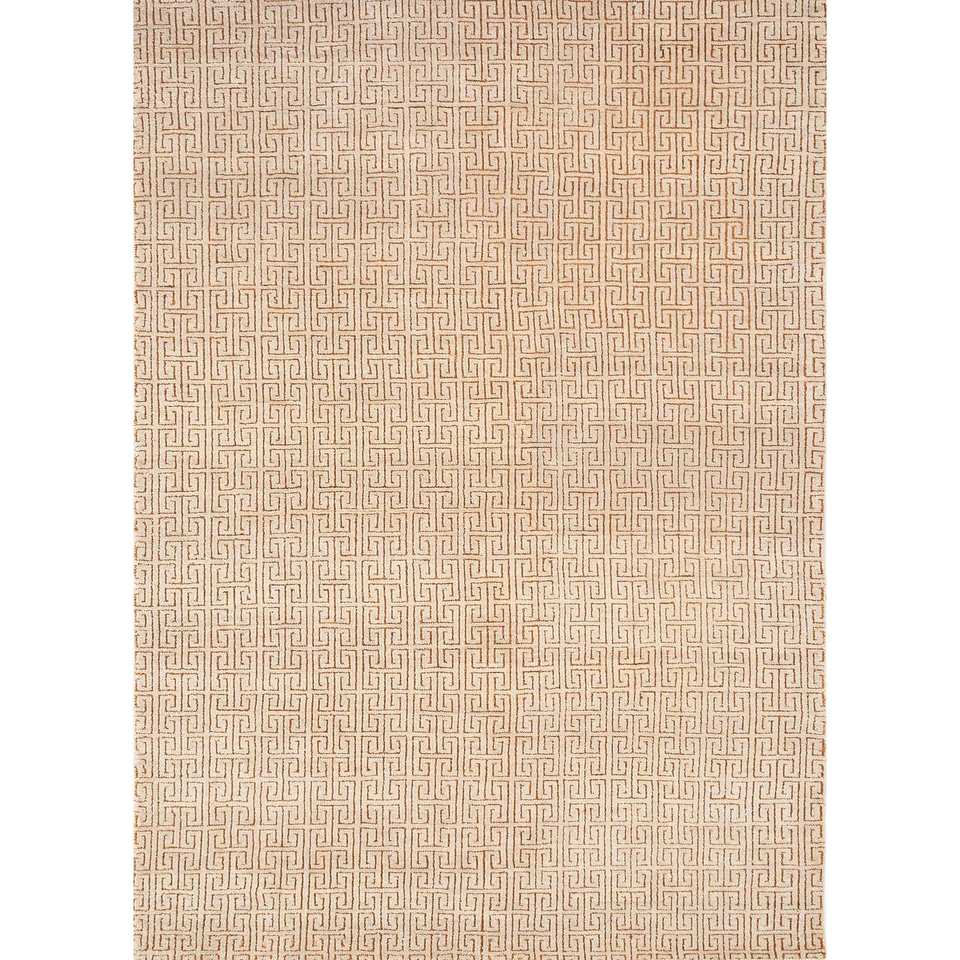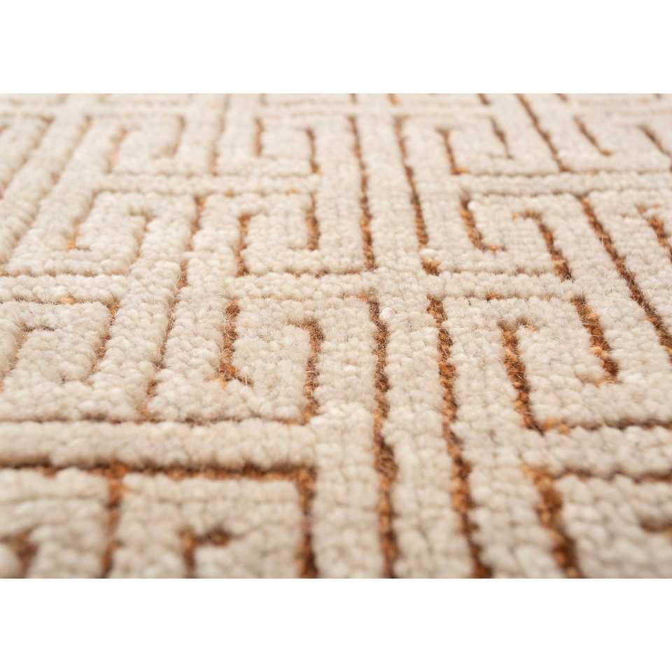 Alfombra de Lana Anudada a Mano Color Marfil con Diseño Geométrico Clásico para Entrada o Pasillo - Lca-874 9x12 Modelo Rectangular Tipo Rompecabezas