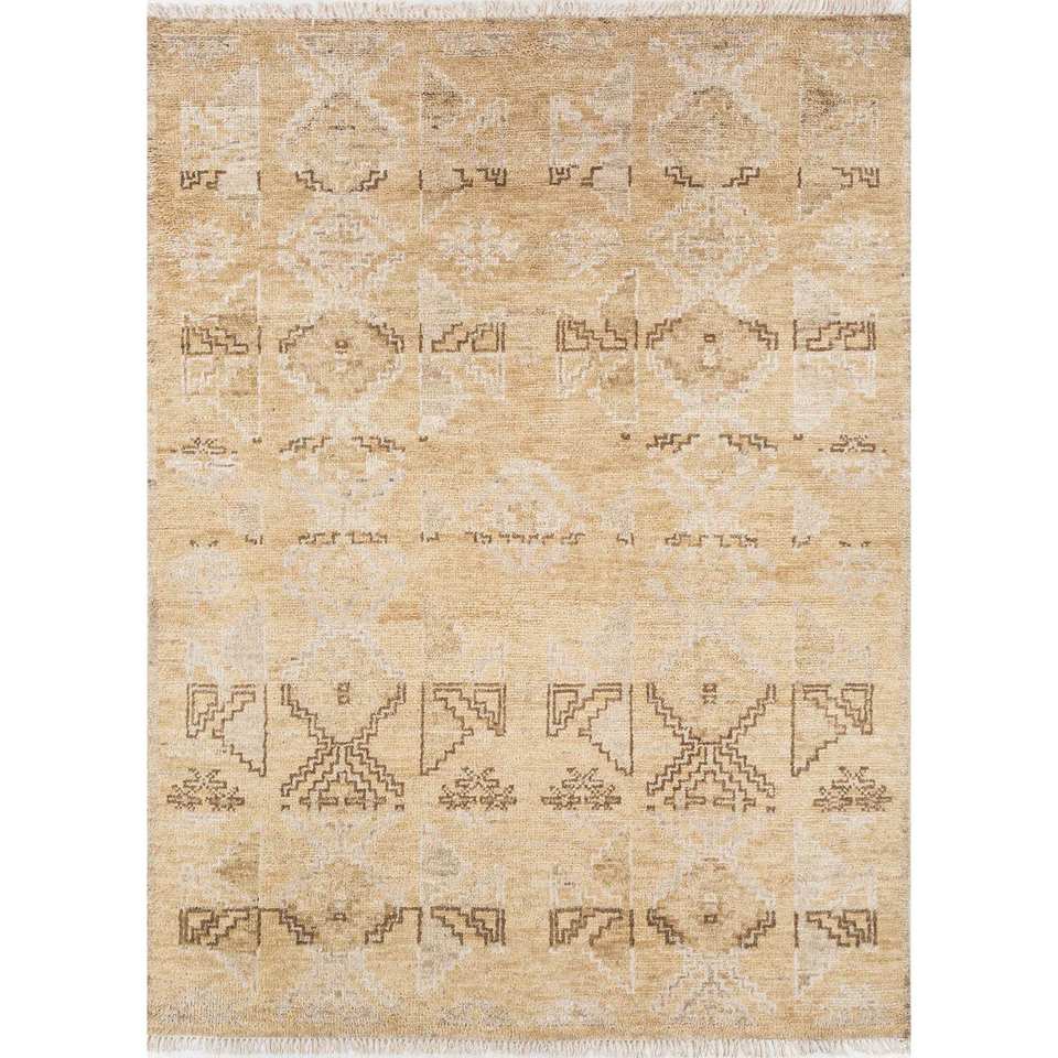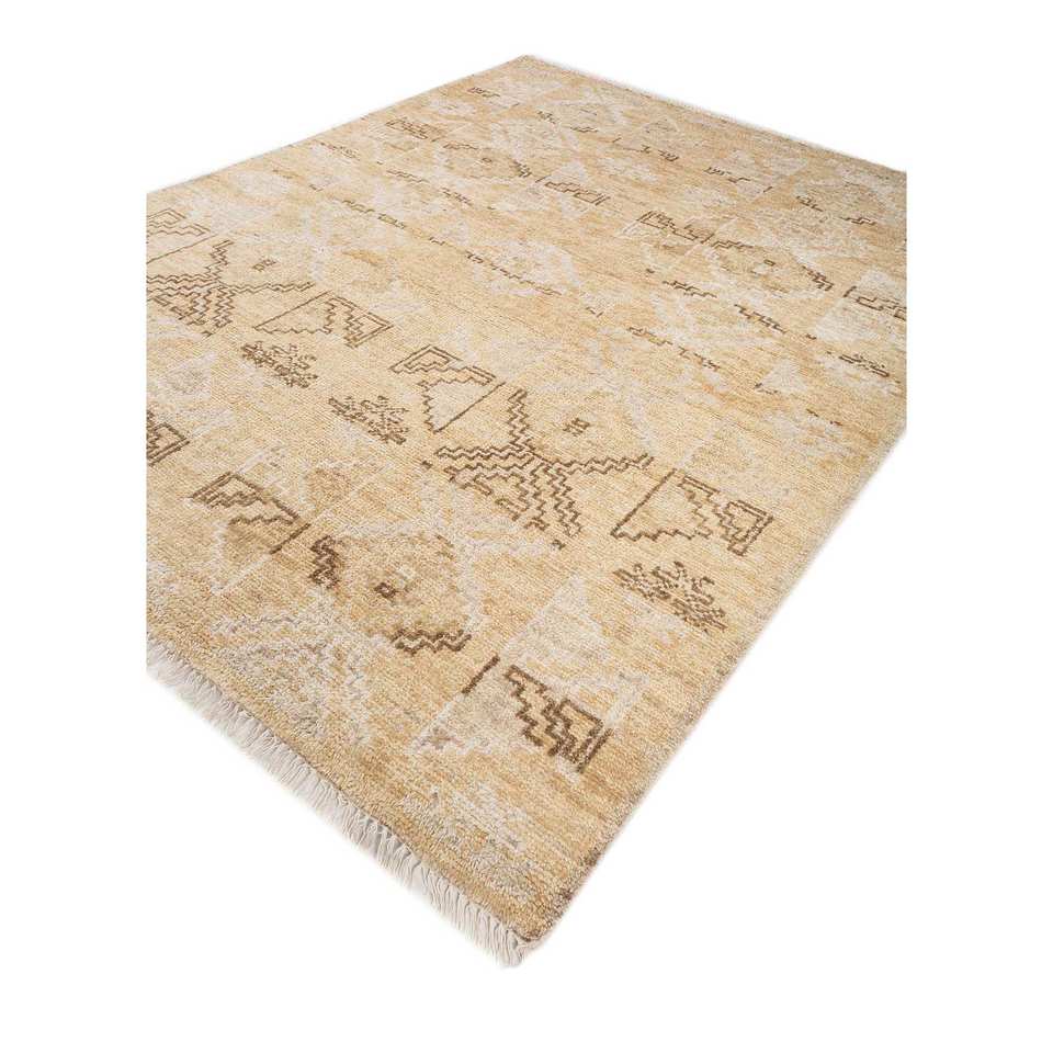 Alfombra de Lana Tejida a Mano Color Marfil, Estilo Tabriz Clásico con Patrón Geométrico para Sala de Estar o Dormitorio Juvenil AKWL-1602