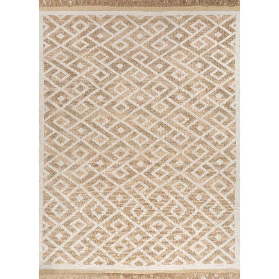 Alfombra de Lana Tejida a Mano Color Marfil con Diseño Geométrico Rectangular Tipo Rompecabezas para Sala de Estar, Entrada, Modelo para Adolescentes Número Skjw-04