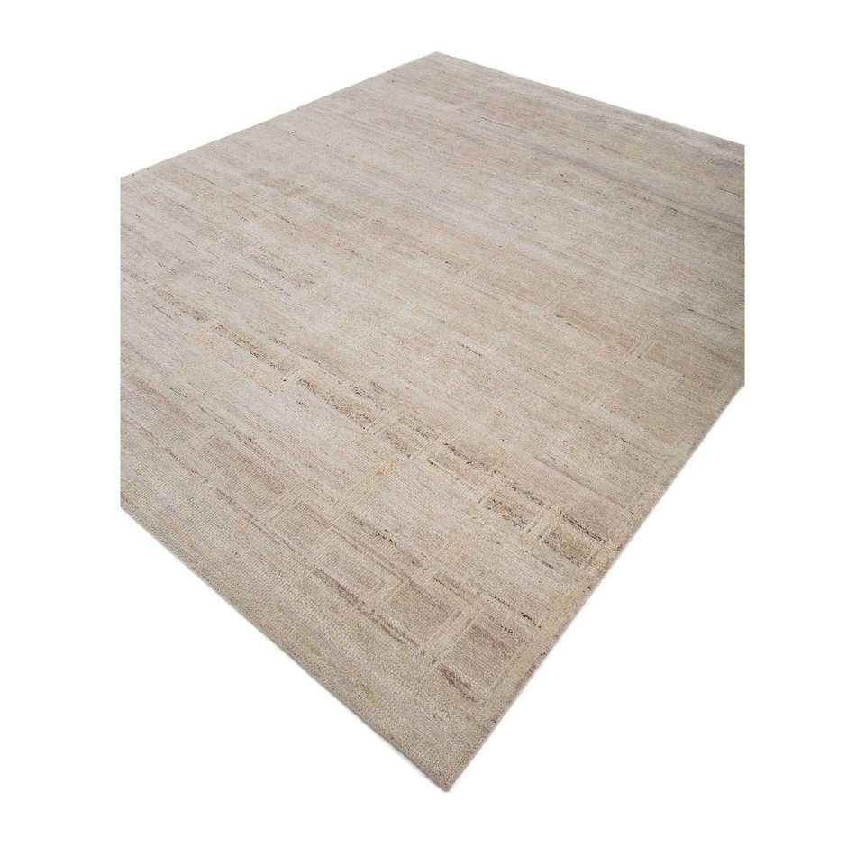 Alfombras de Lana Color Marfil Thyme, Tejidas a Mano, AKWL-1448, Color Sólido, Diseño Abstracto para el Hogar, Sala de Estar, Pasillo, Entrada, Diseño Rectangular Tipo Rompecabezas