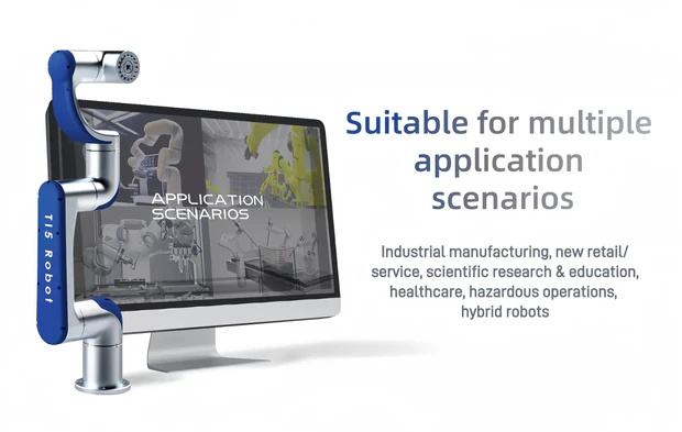 Brazo Robótico Colaborativo de 6 Ejes Serie Ti5 ARM con Caja de Cambios, Control PLC, Radio de Trabajo de 600/900 mm, Colaboración Segura entre Humanos y Robots