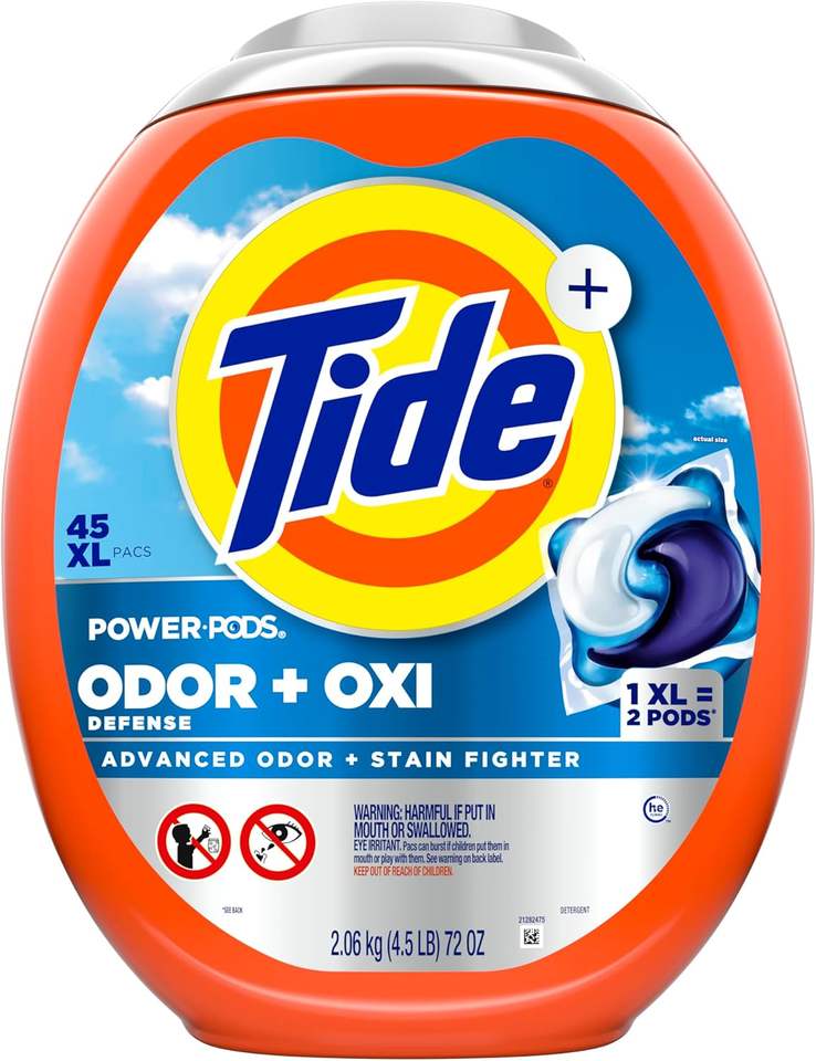 Tide Ultra OXI Power PODS Detergente para ropa Pacs 45 Count HE Compatible con eliminadores de olores Suministro a granel