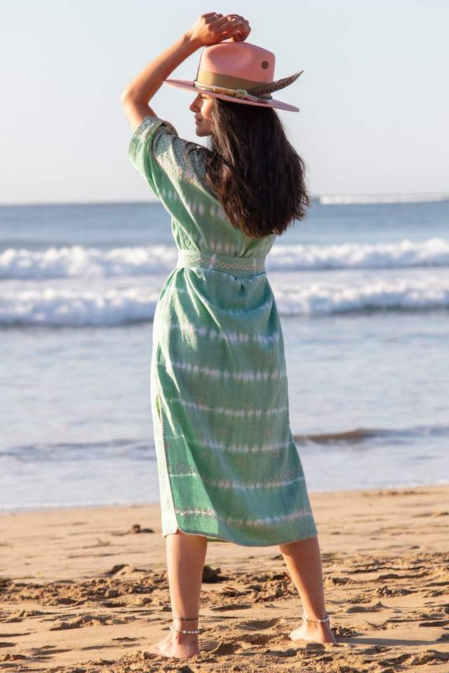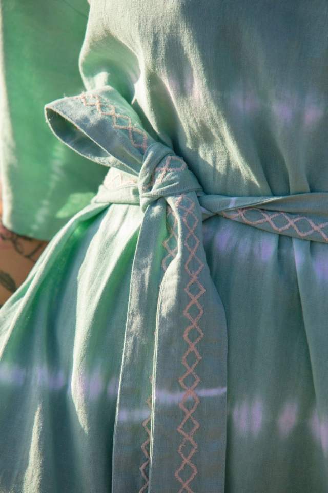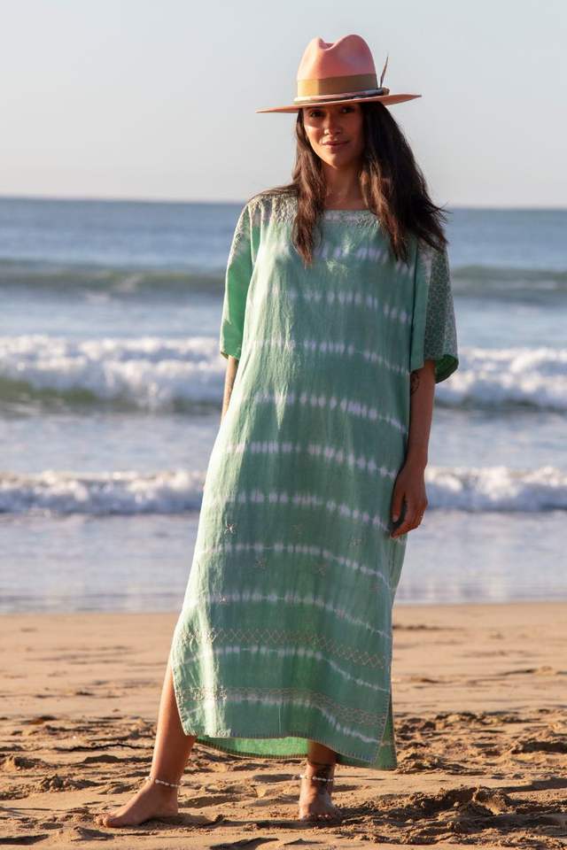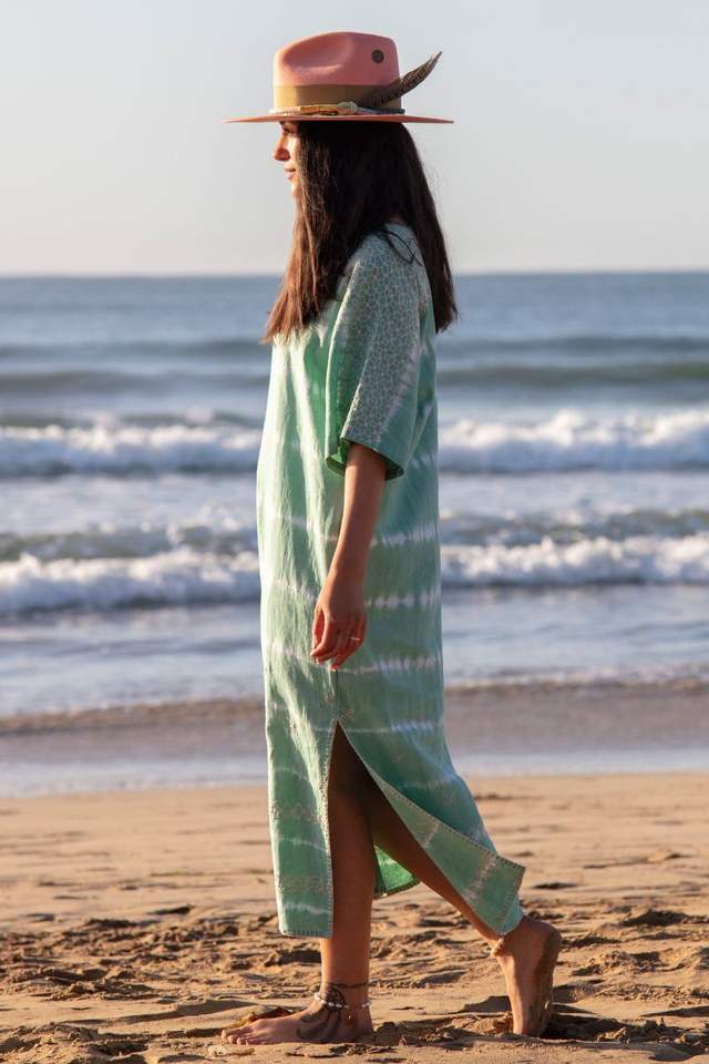 Tie Dye & Bordado Trabajo Mini Longitud Diseñador Manga corta Tallas grandes Kaftan hecho a mano Ropa de moda de Oriente Medio
