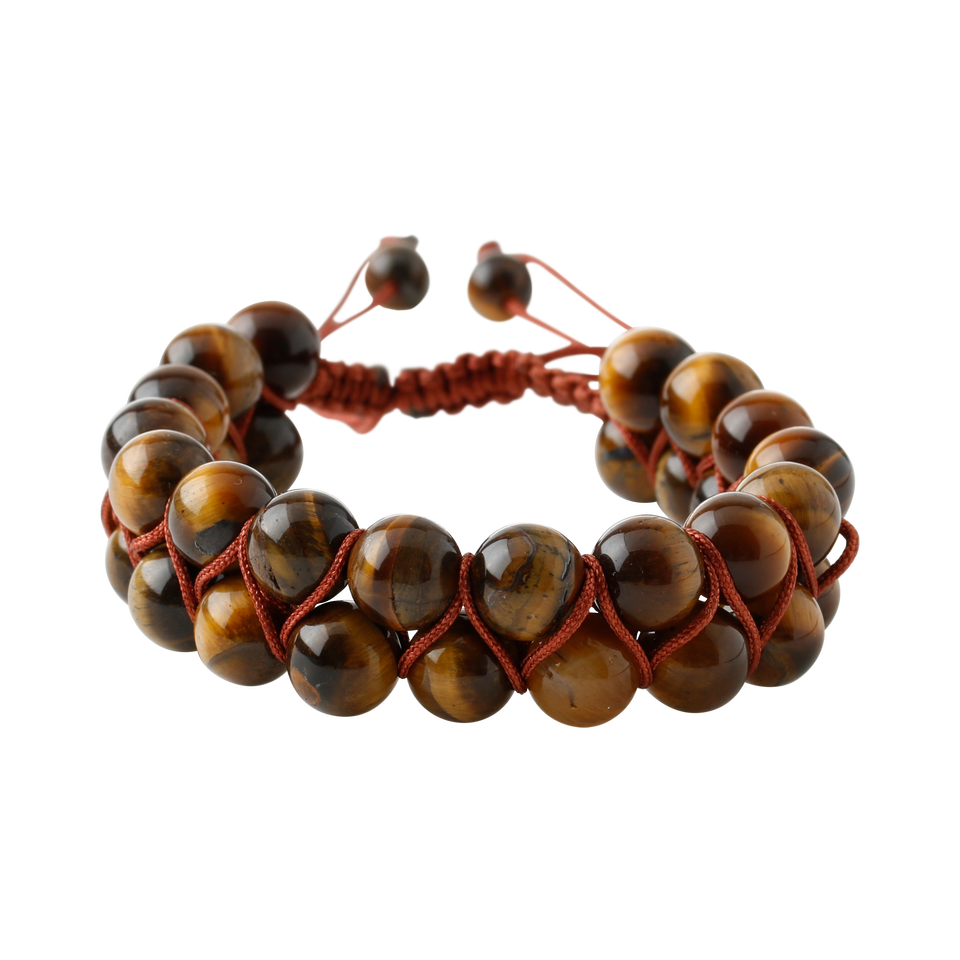 Pulsera de Piedra Natural de Ojo de Tigre de 8mm con Doble Hilera de Macramé