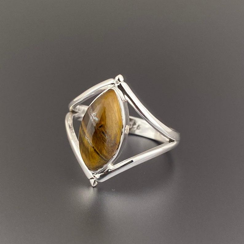 Piedra preciosa de ojo de tigre, piedra preciosa Natural, anillo Simple hecho a mano, joyería de plata de ley 925 sólida, anillo estampado de plata de ley 925