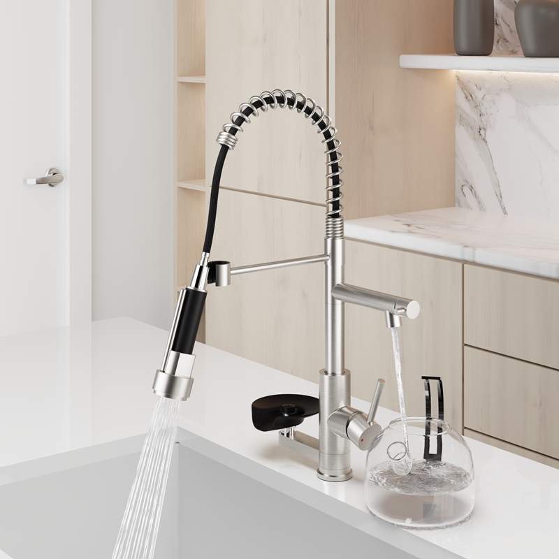 Grifo de Cocina Extraíble de un Solo Mango con 3 Funciones y Enjuagador de Vasos, Éxito de Ventas en TikTok