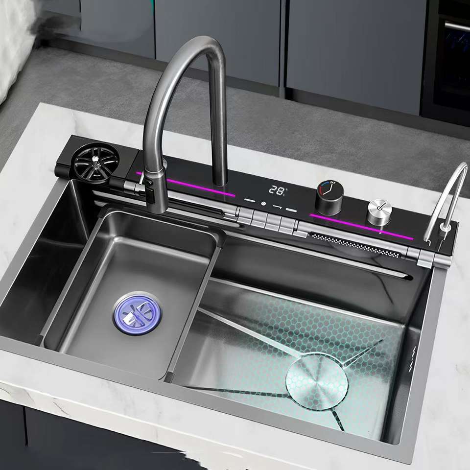 Tiktok Trend LED Digital Display Blue Whale Longyu Cascada Fregadero de cocina Piano Key Nano Anti-Scratch Fregaderos de cocina