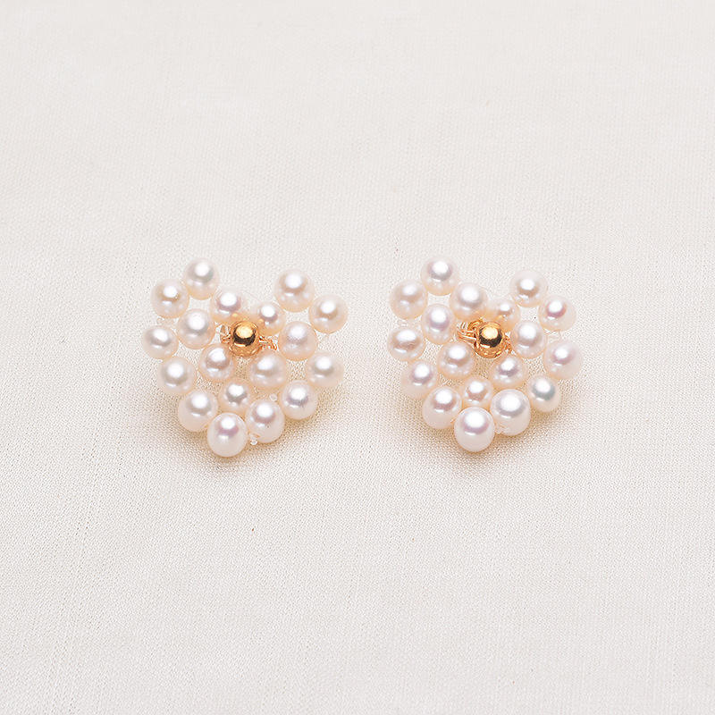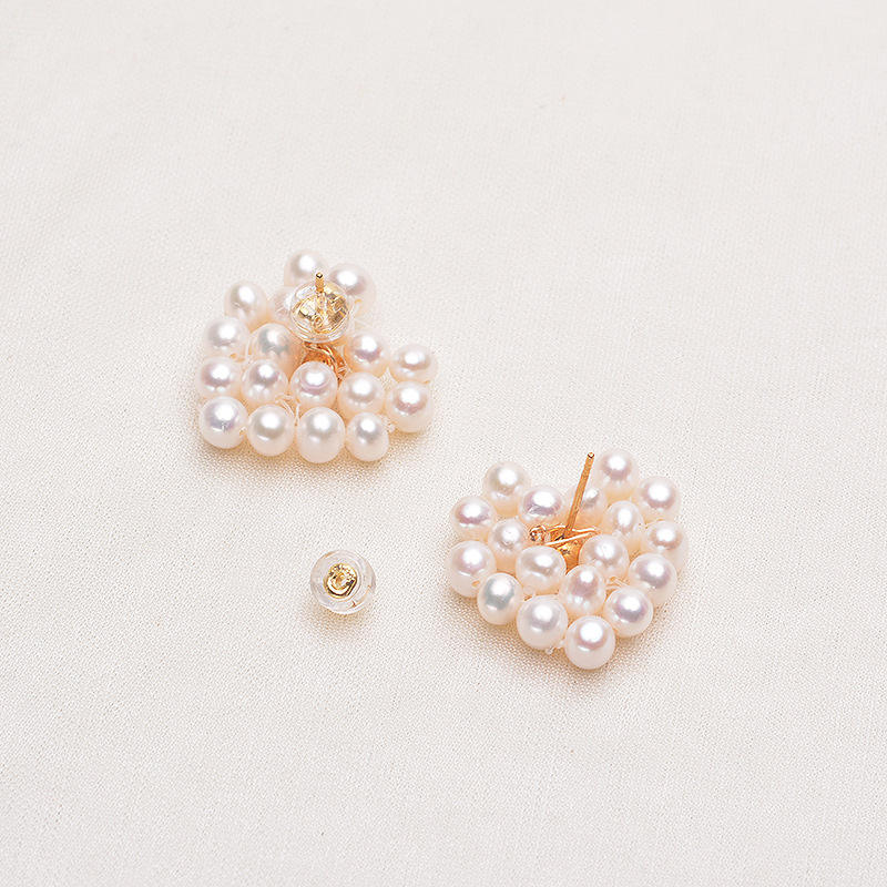 Pendientes de Perlas de Agua Dulce en Forma de Corazón de Diseño Original de Tilian, Perlas Naturales Tejidas Casi Redondas de 3-4 mm
