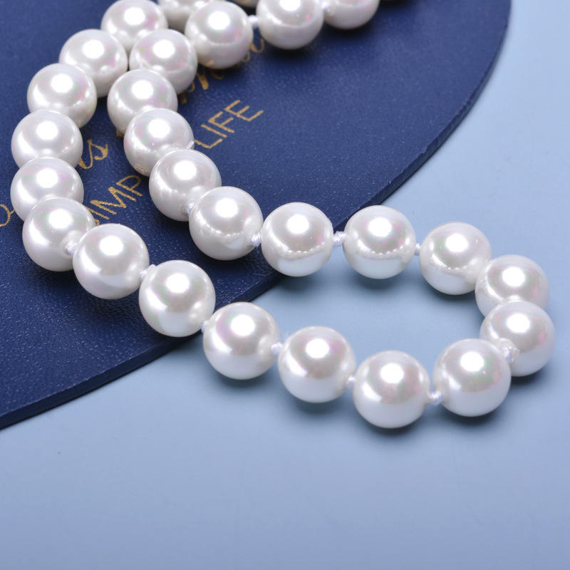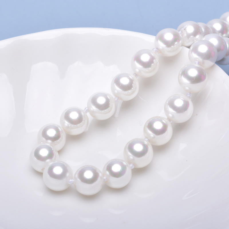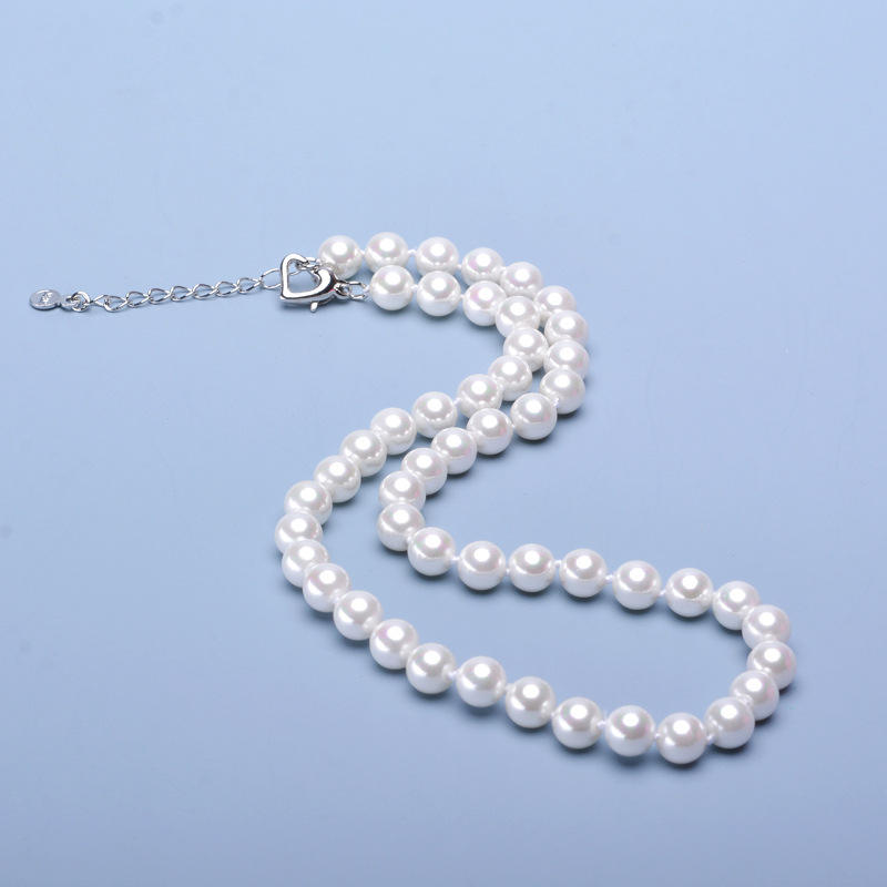Collar de Perlas de Concha de Mar Tilian de 8 mm, Blanco, con Pequeñas Imperfecciones, Fuerte Brillo, con Cierre Extensible, Collar de Micro Pavé de Concha de Mar
