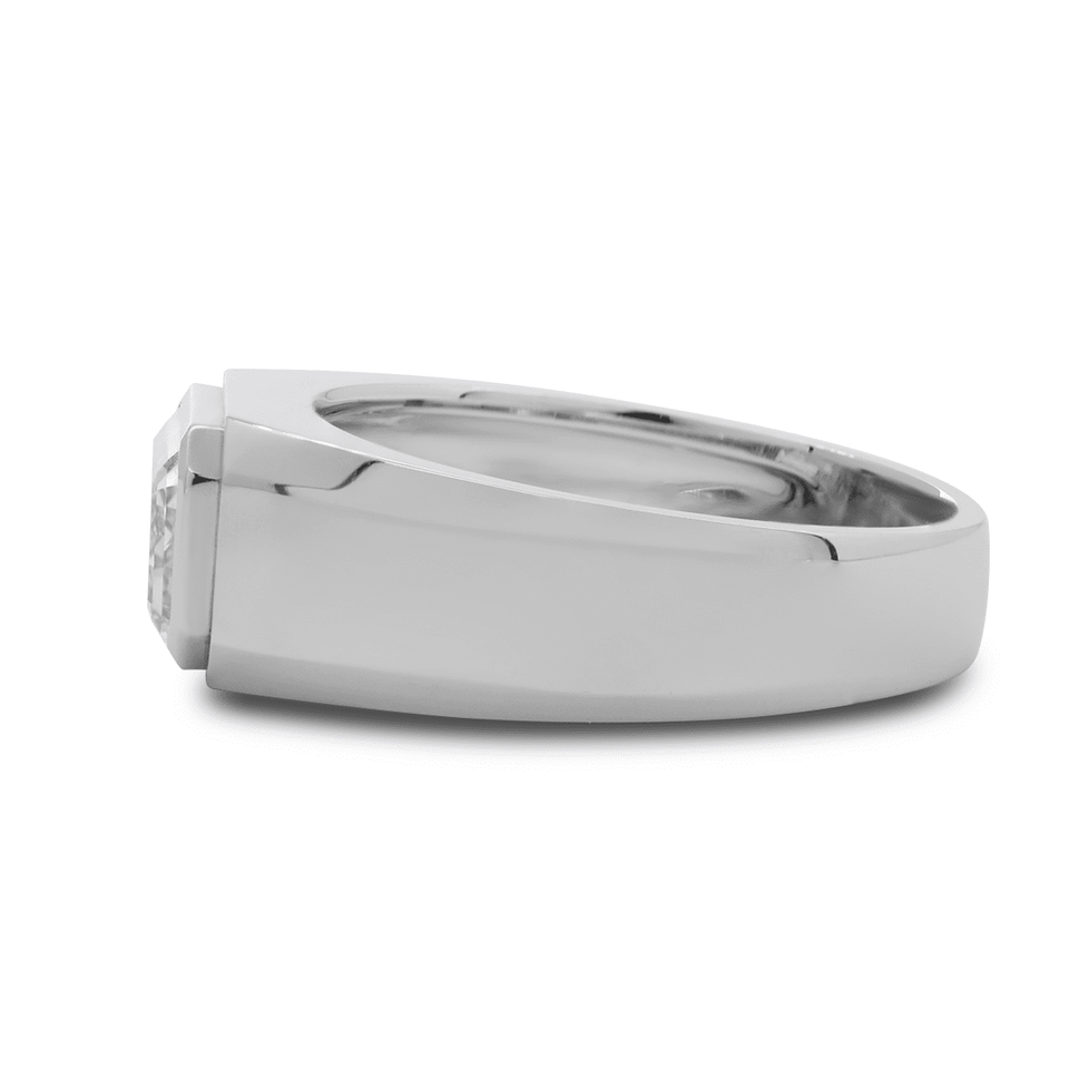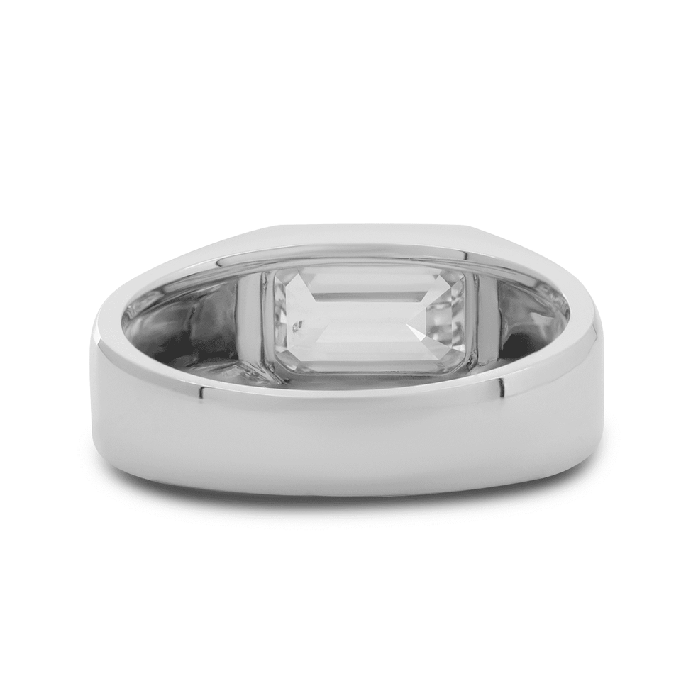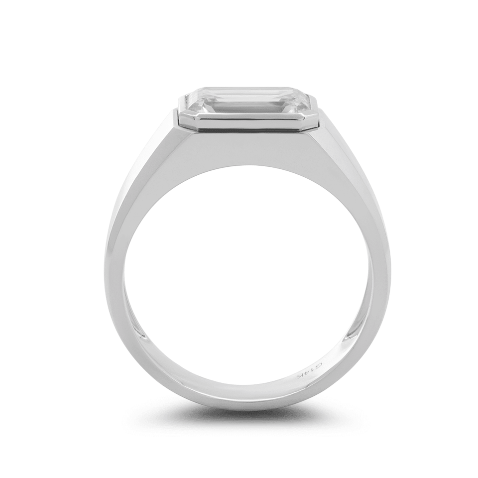 Anillo de Hombre de Oro Blanco Sólido de 14K con Diamante Cultivado en Laboratorio de Corte Esmeralda de 3ct, Certificado IGI, con Bisel de Lujo y Banda Cónica