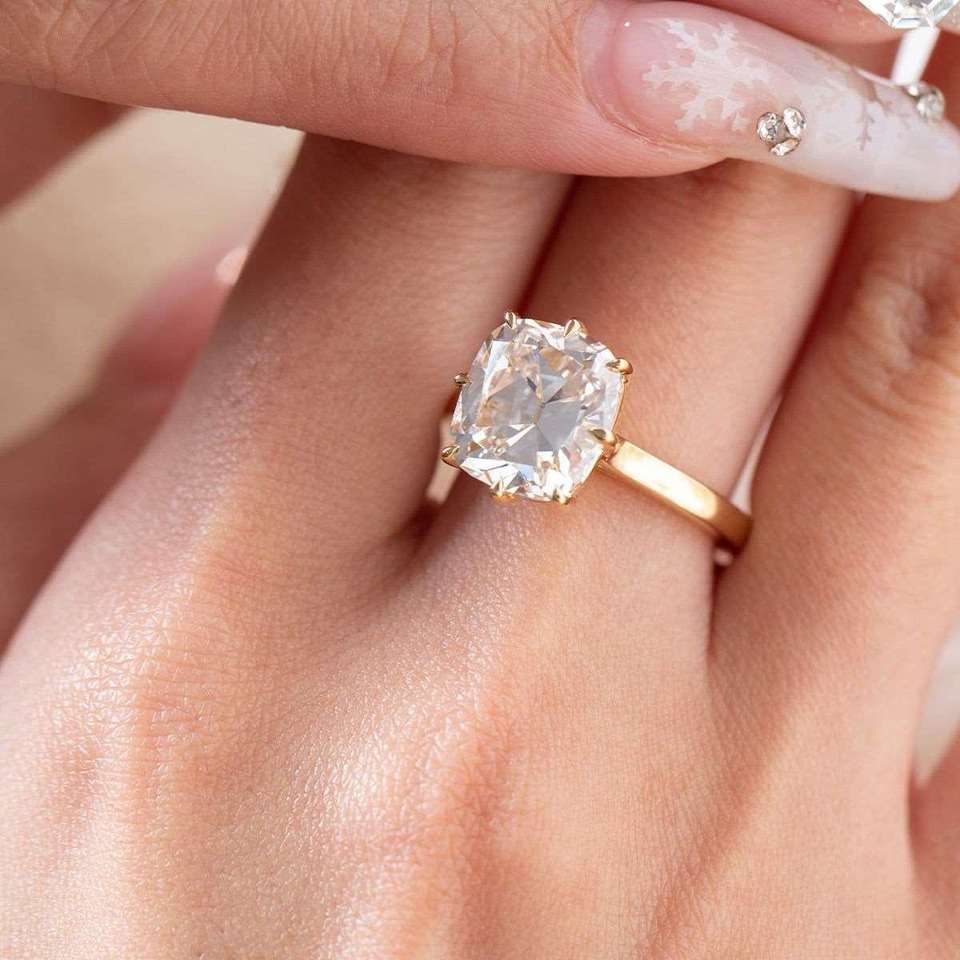 Anillo de oro amarillo macizo de 14K con diamante cultivado en laboratorio de 9 quilates con corte antiguo, certificado por IGI, para mujer, de lujo, con solitario de 8 puntas.