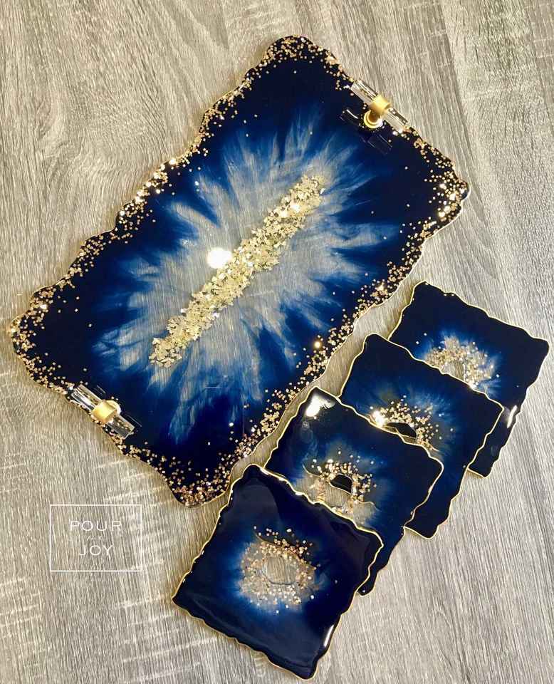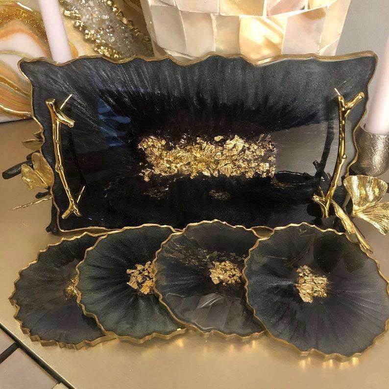 Juego de Posavasos y Bandeja de Servicio de Resina Decorativa de Diseño, Hechos a Mano, Pintados a Mano, de Alta Calidad y Artesanía Atemporal para el Hogar