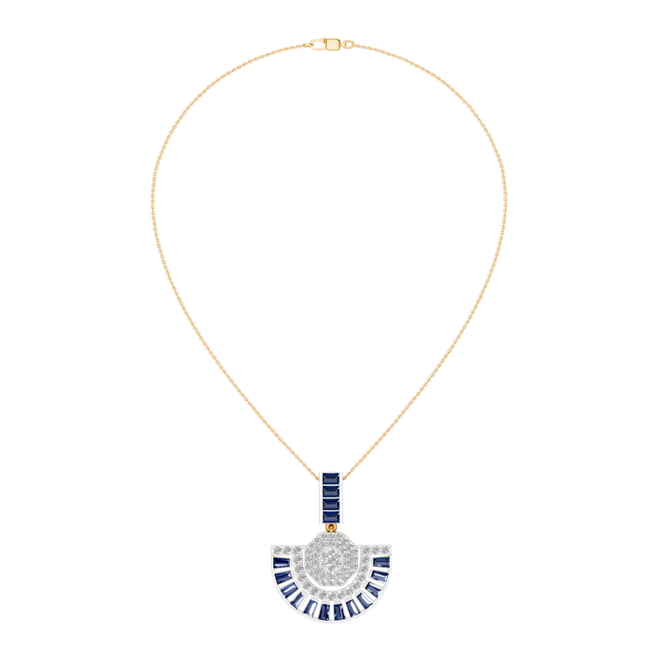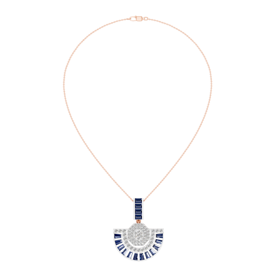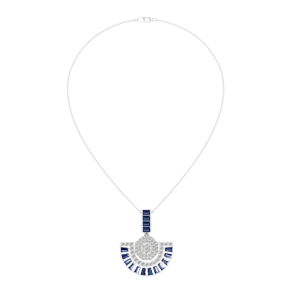 Estilo:Colgante de Zafiro Azul Geométrico y Diamantes