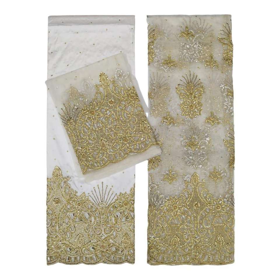 Tela de poliéster 100% antiestática con pedrería pesada y bordados, ecológica, para vestidos de boda de niñas, estilo George nigeriano de tradición atemporal.