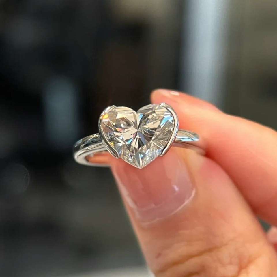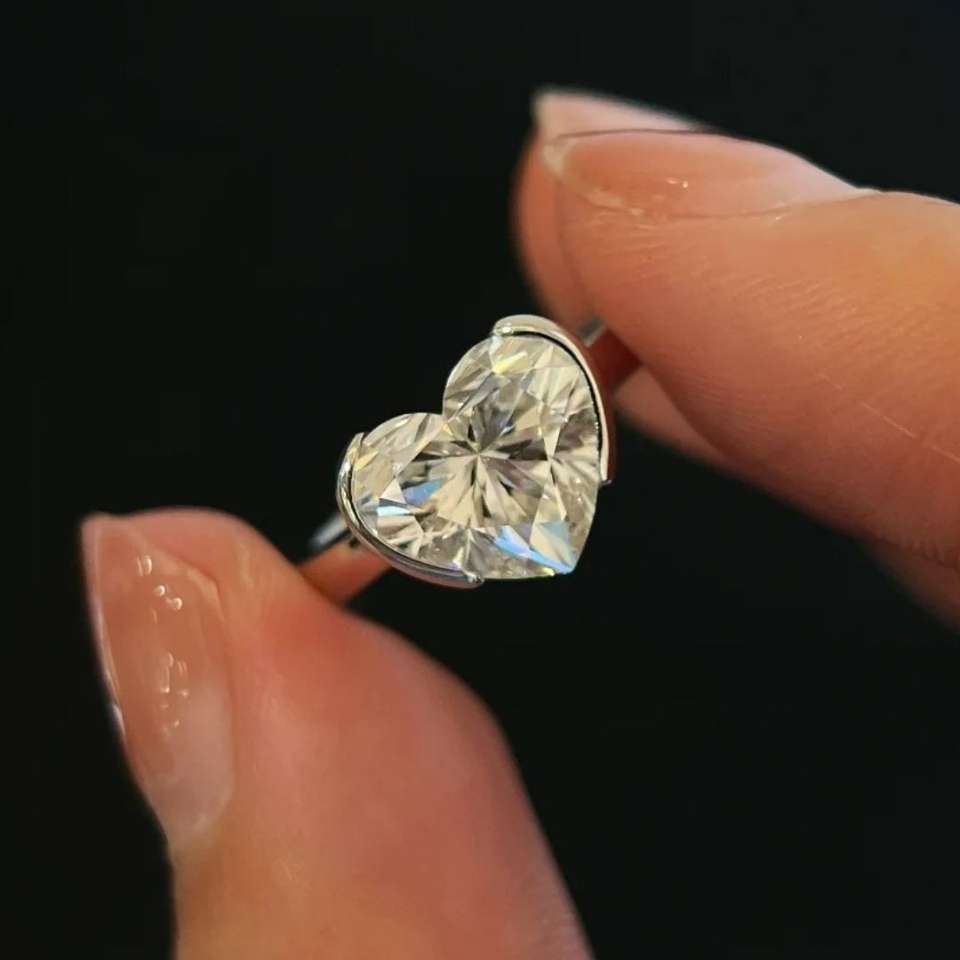 Anillo de diamantes atemporal con media montura en forma de corazón, en oro, oro rosa, oro blanco, plata, diamantes cultivados en laboratorio, certificados por IGI, con corte corazón, VVS, VS.